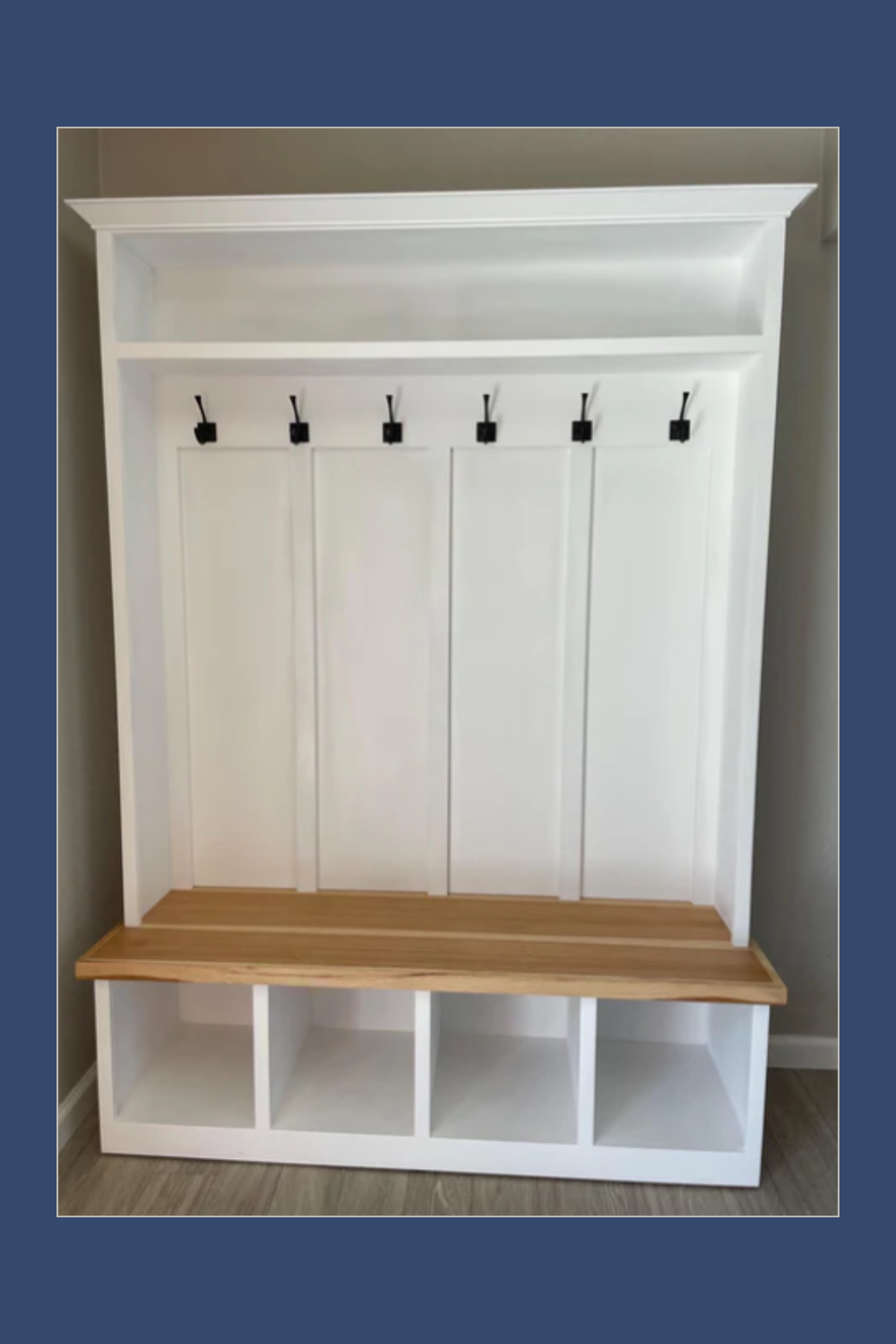 Bring a clean, tailored look to your entryway with our handcrafted painted hall tree, featuring classic batten board detailing and the option to customize the finish to match your space.