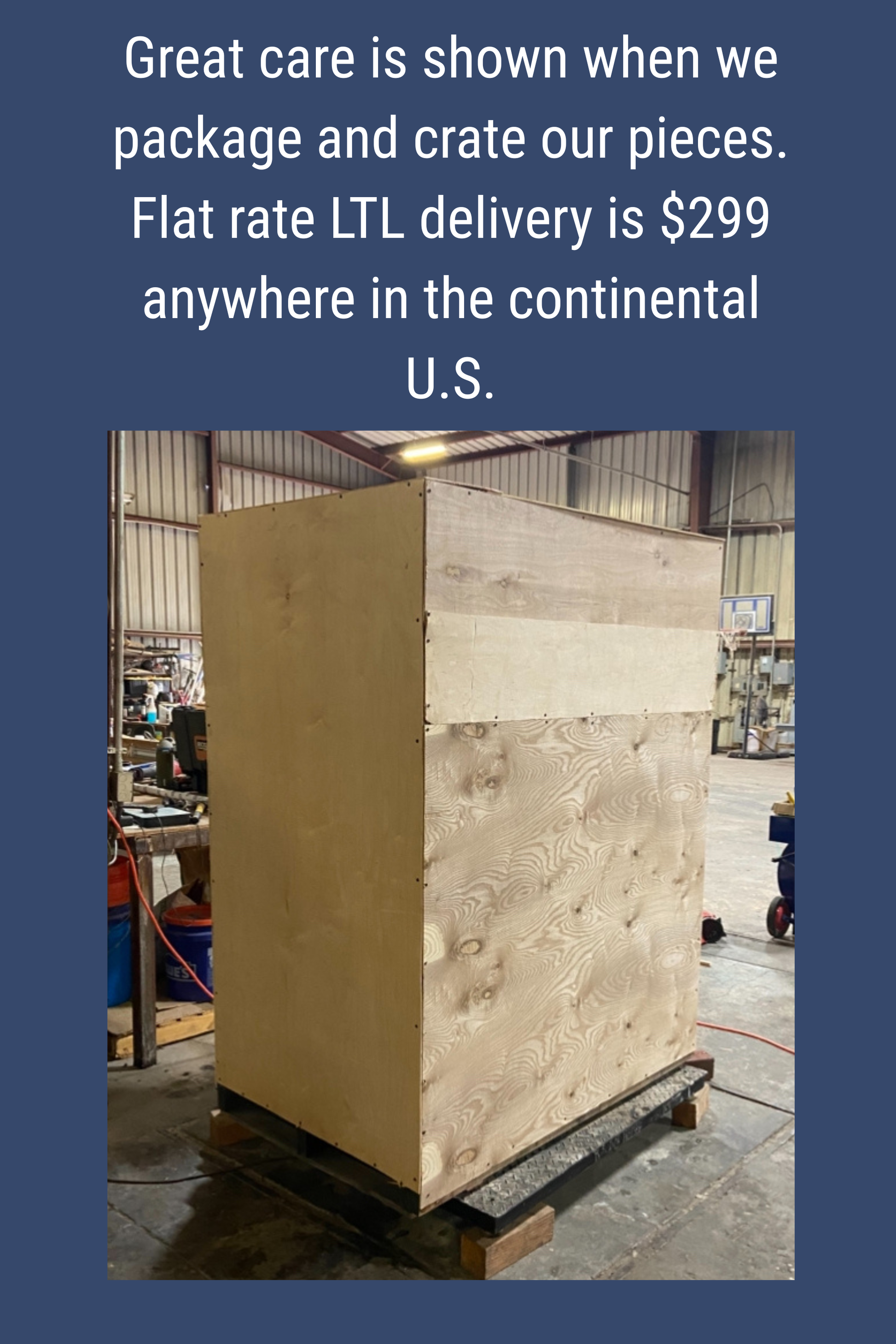 - Flat Rate LTL Shipping: $299 anywhere in the continental U.S.