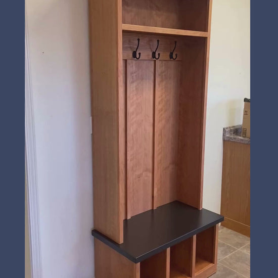• Coat hooks and cubby storage for everyday organization